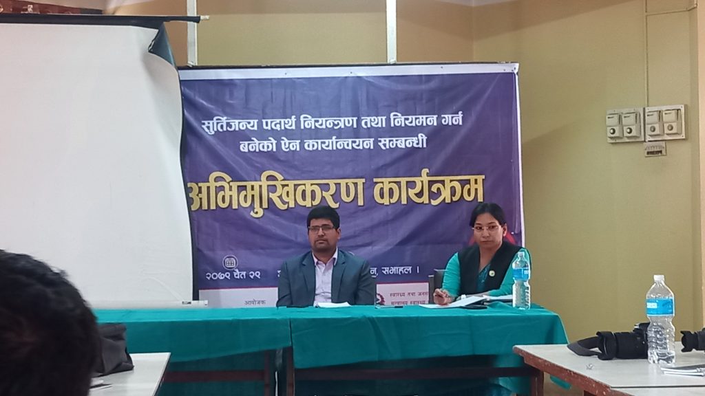 सूर्तजन्य पदार्थ सेवनका कारण नेपालमा बर्षेनी २७ हजार जनाको मुत्यु हुने गरेकाले यसको नियन्त्रणमा सबै पक्ष एकजुट हुनुपर्ने बताएका हुन् । अभिमुखीकरण कार्यक्रममा वक्ताहरुले सूर्तीजन्य पदार्थ नियन्त्रण गर्ने ऐन बनेपनि कार्यान्वयन हुन नसकेको मा चिन्ता व्यक्त गरेका छन् । कार्यक्रममा कार्यपत्र प्रस्तुत गर्दै स्वास्थ्य कार्यालय चितवनका प्रमुख दुर्गादत्त चापागाईले नेपालमा प्रत्येक वर्ष २७ हजार एक सय मानिसको मृत्यु सूर्तीजन्य पदार्थको कारणले हुने गरेको जानकारी दिए । सूर्तीजन्यपदार्थ नियमन गर्ने एन बनेपनि कार्यान्वयन गर्न जटिल हुनेगरेको बताए । सूर्तीजन्य पदार्थ प्रयोग गर्ने विश्वका मानिसमध्ये ८० प्रतिशत विकाससन्मुख मुलुकका नागरिक रहेको जानकारी दिए । सन् २०२० मा भएका अध्ययन हरुले २२.३ प्रतिशत विश्वका मानिसले सूर्तीजन्य पदार्थको सेवन गरेको तथ्य रहेको उनले बताए । त्यसमध्ये ३६.७ प्रतिशत पुरुष र ७.८ प्रतिशत महिला रहेको जनाइएको छ । नेपालमा सूर्तीजन्य दैनिक २४.१ प्रतिशत मानिसले सूर्तीजन्य पदार्थ सेवन गर्ने गरेको तथ्य रहेको उनले जानकारी दिए । त्यसमध्य ४०.१ प्रतिशत पुरुष र १० प्रतिशत महिला रहेको उनले जानकारी दिए । यस्तै २८.९ प्रतिशत मानिषले (धुम्रपान वा धुँवारहित ) सेवन गर्ने गरेको तथ्य सन् २०१९ मा भएको एस टिइ पिएस सर्वेले देखाएको उनले जानकारी दिए । धुम्रपान गर्ने १७.१ प्रतिशत मध्ये २८ प्रतिशत पुरुष र ७.५ प्रतिशत महिला रहेका छन् । विद्युतीय चुरोट प्रतियोग गर्नेहरु बढ्दै गएको भन्दै उहाँले ०.८ प्रतिशत रहेको जानकारी दिए । सूर्तीजन्य पदार्थको सेवनका कारण मुटु रोग, श्वासप्रश्वास सम्बन्धी रोगको जोखिम बढ्ने उनले बताए । कार्यक्रममा नेपाल चिकित्सक संघका अध्यक्ष डा. अनिलबिक्रम कार्कीले सूर्तीजन्य पदार्थ नियन्त्रण गर्न सके नसर्ने रोगको जोखिमबाट बच्न सकिने बताए । उनले २० मिनेट मात्रै धुम्रपान नगर्दापनि उच्च रक्तचाप, पल्स रेड र शरीरिको तापक्रम सामान्य अवस्थामा ल्याउन सकिने बताए ।आठ घण्टा धुम्रपान नगर्दा ९३.७५ प्रतिशत निकोटिन लेभल घट्ने उनले जानकारी दिए ।यस्तै दुई हप्ता धुम्रपान गर्दा रक्तसञ्चार र दाँतमा गमको मात्रा सामान्य अवस्थामा आउने भन्दै डा. कार्कीले सूर्तीजन्य पदार्थको प्रयोग न्यूनिकरण गर्नुपर्नेमा जोड दिए । चुरोटको धुँवामा ४ हजार प्रकारका केमिकल हुने बताउँदै ५० वटाले क्यान्सर बनाउने जानकारी दिए । कार्यक्रममा एक्सन नेपालका अध्यक्ष आनन्दबहादुर चन्दले सूर्तीजन्य पदार्थको कर र मूल्य बढाउन सकेपनि केही हदसम्म नियन्त्रण गर्न सकिने बताए । दक्षिण एशियामा सबैभन्दा सस्तो सूर्तीजन्य पदार्थ नेपालमा रहेको जानकारी दिदै यसको मुल्य बढाउनुपर्न