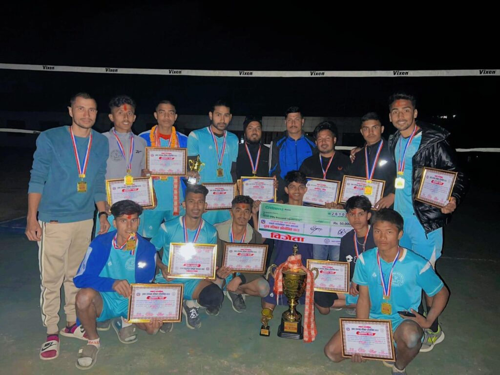 मनहरी– प्रथम उपाध्यक्ष कप पुरुष भलिबल प्रतियोगिताको उपाधि मनहरी गाउँपालिका ४ नं वडाले हात पारेको छ । प्रतियोगितामा ३ नं वडाको टिमले उपविजेतामा चित्त बुझायो ।
