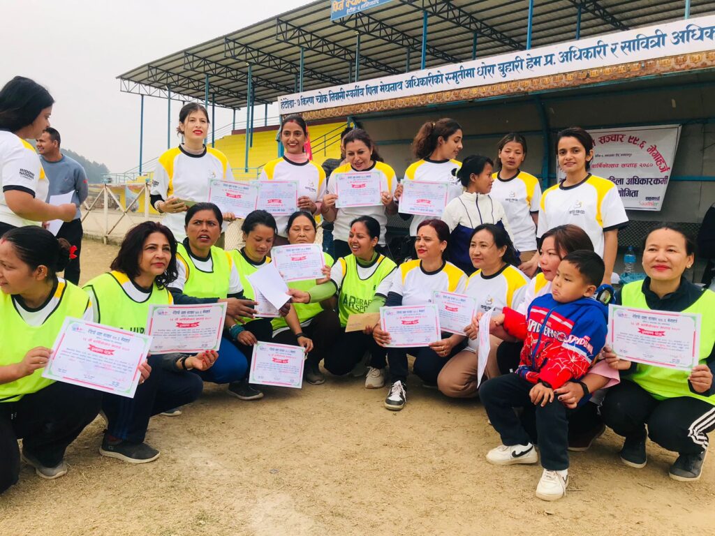 महिला अधिकारर्कीको तर्फबाट पहिलो गोल गैर सरकारी संस्था मकवानपुरका अध्यक्ष रमिला सापकोटाले गरेकी थिईन् । त्यस्तै महिला अधिकारकर्मीको तर्फबाट सुनिरा लामाले दोश्रो गोल गर्दै टोलीलाई २–० को जित दिलाए । जितसँगै महिला अधिकारकर्मीले नगत ५ हजार सहित प्रमाण पत्र प्राप्त गरेका छन् । उपबिजेता भएका महिला पत्रकार टोलीले पनि प्रमाण पत्र प्राप्त गरेका छन् ।