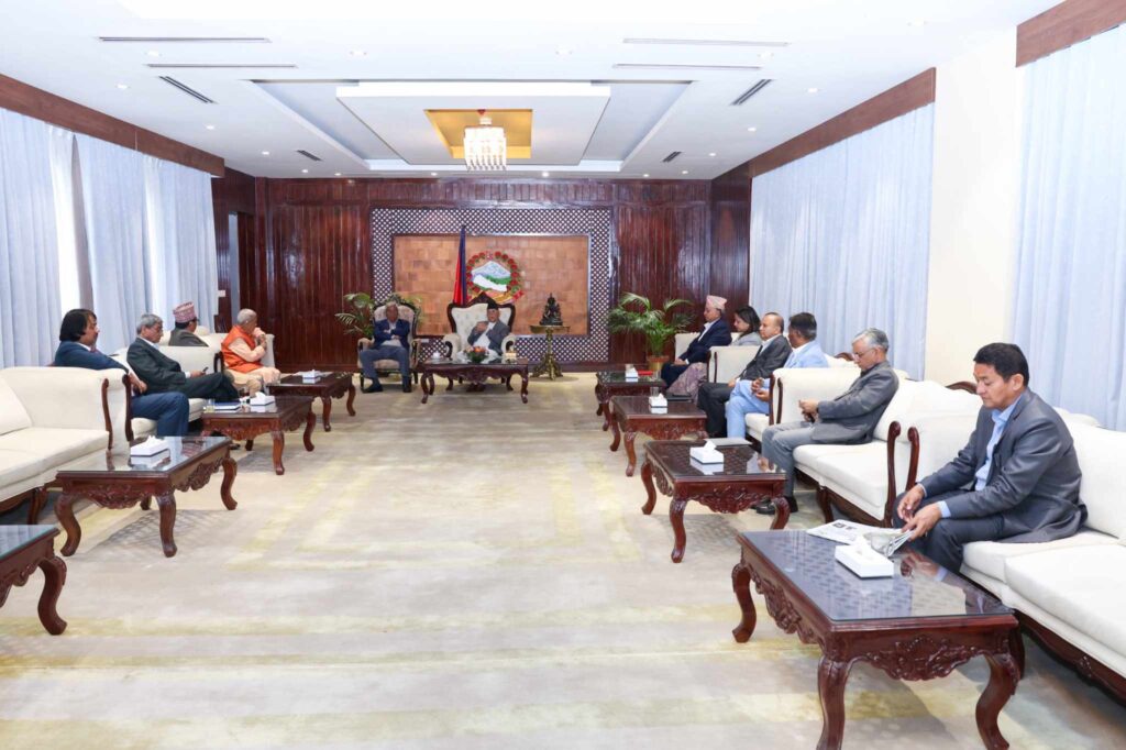 बैठकमा गृहमन्त्री रमेश लेखक, श्रम मन्त्री शरत सिंह भण्डारी, एमालेका वरिष्ठ उपाध्यक्ष ईश्वर पोखरेल, एमाले महासचिव शंकर पोखरेल र प्रधानमन्त्रीका सल्लाहकार विष्णु रिमाल पनि सहभागी छन्।