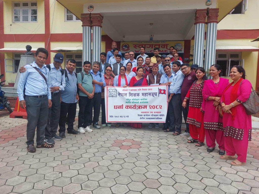 शिक्षक महासंघ राष्ट्रिय समितिको आह्वानमा देशका सबै पालिकाहरुमा शिक्षक महासंघले ध्यानाकर्षण पत्र बुझाएको छ । शिक्षक महासंघको घोषित कार्यक्रम तालिका अनुसार राष्ट्रिय समितिमा आज नेकपा माओवादी केन्द्रको कार्यालयमा ज्ञापनपत्र बुझाउने कार्यक्रम तालिका अनुरुप ज्ञापनपत्र बुझाइएको नेपाल राष्ट्रिय शिक्षक संगठन राष्ट्रिय समिति उपमहासचिव श्रीराम दाहालले बताए । यता मकवानपुर जिल्ला आन्दोलन परिचालन समिति संयोजक मुकुन्द न्यौपानेले पनि जिल्लाका १० वटै पालिकामा ध्यानाकर्षण पत्र बुझाइएको बताए ।