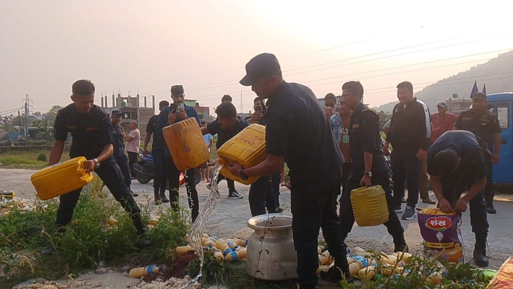 प्रहरीले उक्त स्थानमा खानतलासी गर्दा करिब ४ हजार लिटर तयारी घरेलु मदिरा तथा ५ हजार लिटर मदिरा उत्पादनका लागि प्रयोग हुने कच्चा पदार्थ फेला पारी नियन्त्रणमा लिएको जनाएको छ। साथै ८ वटा ग्यास सिलिन्डर, २ वटा भट्टे चुलो, २ बोरा चामल, प्लास्टिकका ड्रम तथा बोतलहरू समेत बरामद गरी नष्ट गरिएको प्रहरीले जानकारी दिएको छ।